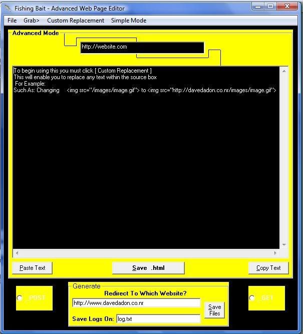 This program is for making new web phisher for login or if you use _Post ose _Get Method :